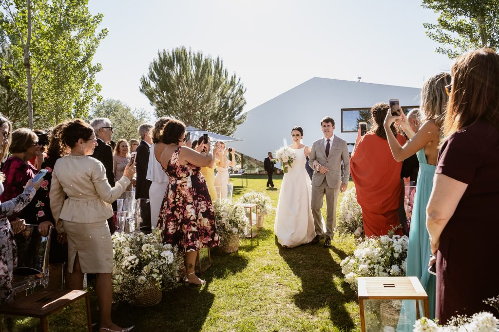 Um casamento no Land Vineyards combina duas coisas que raramente aparecem juntas de forma tão natural — a alma alentejana, ligada à paisagem e à tradição e uma arquitetura moderna, integrada com o ambiente.