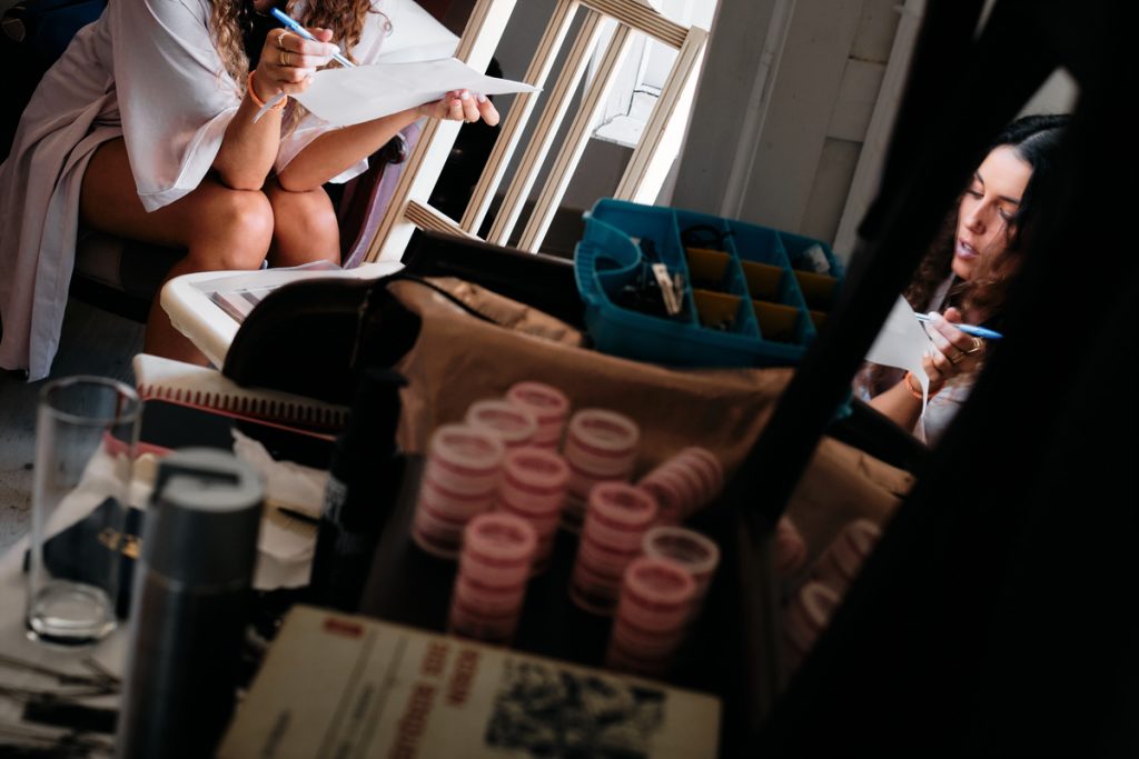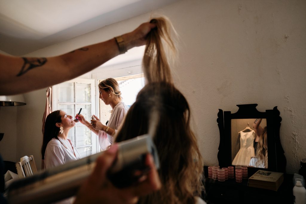 Quando cheguei ao quarto da Inês para registar os preparativos, já sabia que o dia seria especial. Havia música, gritos de entusiasmo e até… shots de poncha (quem disse que as tradições madeirenses não podiam invadir o Alentejo?). Ah, e claro, a surpresa da noite: uma coreografia que as amigas preparavam em segredo. Foi uma verdadeira festa antes mesmo de o dia começar!