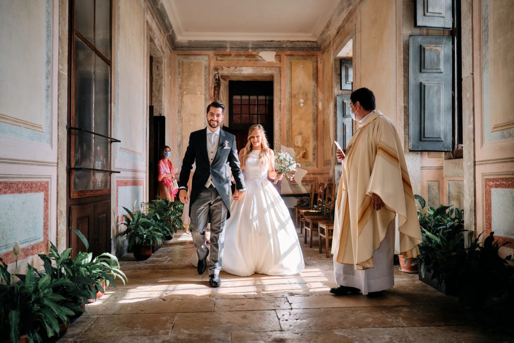 Mas nem só de diversão se faz um casamento. A história da Inês e do Eduardo é de amor e resiliência. Ele pediu-a em casamento durante um voo de helicóptero sobre o Cristo Redentor no Brasil – sim, super cinematográfico! Originalmente, iam casar em 2020, mas a pandemia mudou-lhes os planos. Felizmente, em 2021, conseguiram finalmente celebrar o seu dia perfeito na Quinta da Taipa, um local que parece feito para histórias de amor assim.